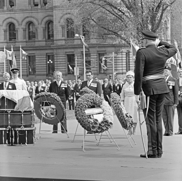 Photo de couverture : Des gens déposent une couronne lors du jour de l’Armistice à Québec, le 11 novembre 1942 (source : Bibliothèque et Archives Canada).