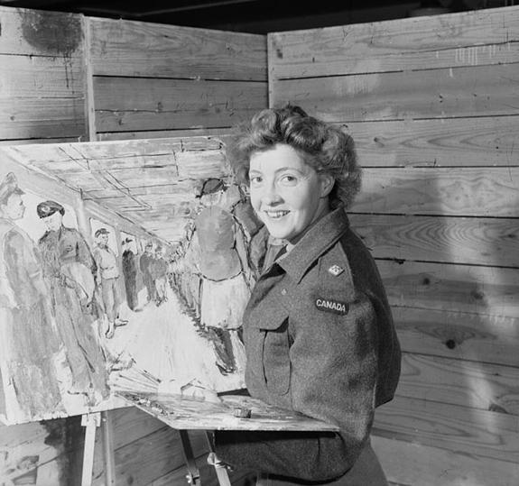 À l’hiver 1942, le premier ministre Mackenzie King approuva la création des Archives de guerre canadiennes, un programme conçu pour produire des archives artistiques de l’expérience du Canada au cours de la Deuxième Guerre mondiale. Le programme était dirigé par un comité d’artistes de guerre qui sélectionnait des artistes pour les envoyer à l’étranger. On confia le mandat aux artistes canadiens détachés d’assurer qu’une trace du passé serait conservée sous une forme qui rendrait justice à l’intensité émotionnelle du conflit. Le cran et la détermination d’une artiste courageuse firent en sorte que le travail crucial des Canadiennes fut intégré à ces précieuses archives historiques.